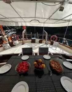 Teknemiz 8 kişilik konaklama kapasitesine sahip olup; sabah kahvaltısı, öğle yemeği, 5 çayı ve akşam yemeği dahil olarak şefimiz tarafından özenle hazırlanır.
